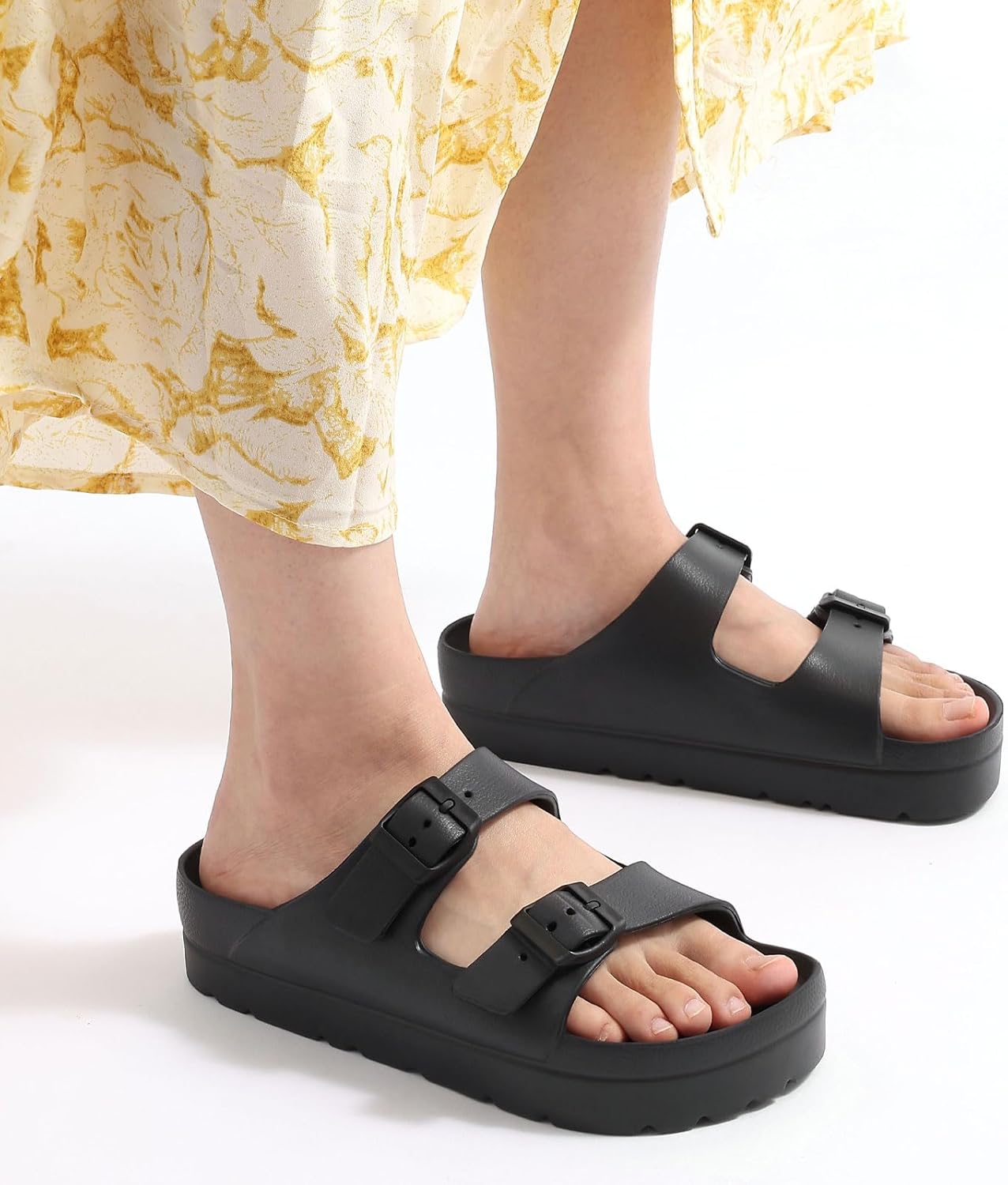 The adjustable buckle ensures a secure and customized fit, while the arch support provides added comfort and stability for your feet. Say goodbye to achy feet and hello to summer bliss with these stylish and functional platform sandals.